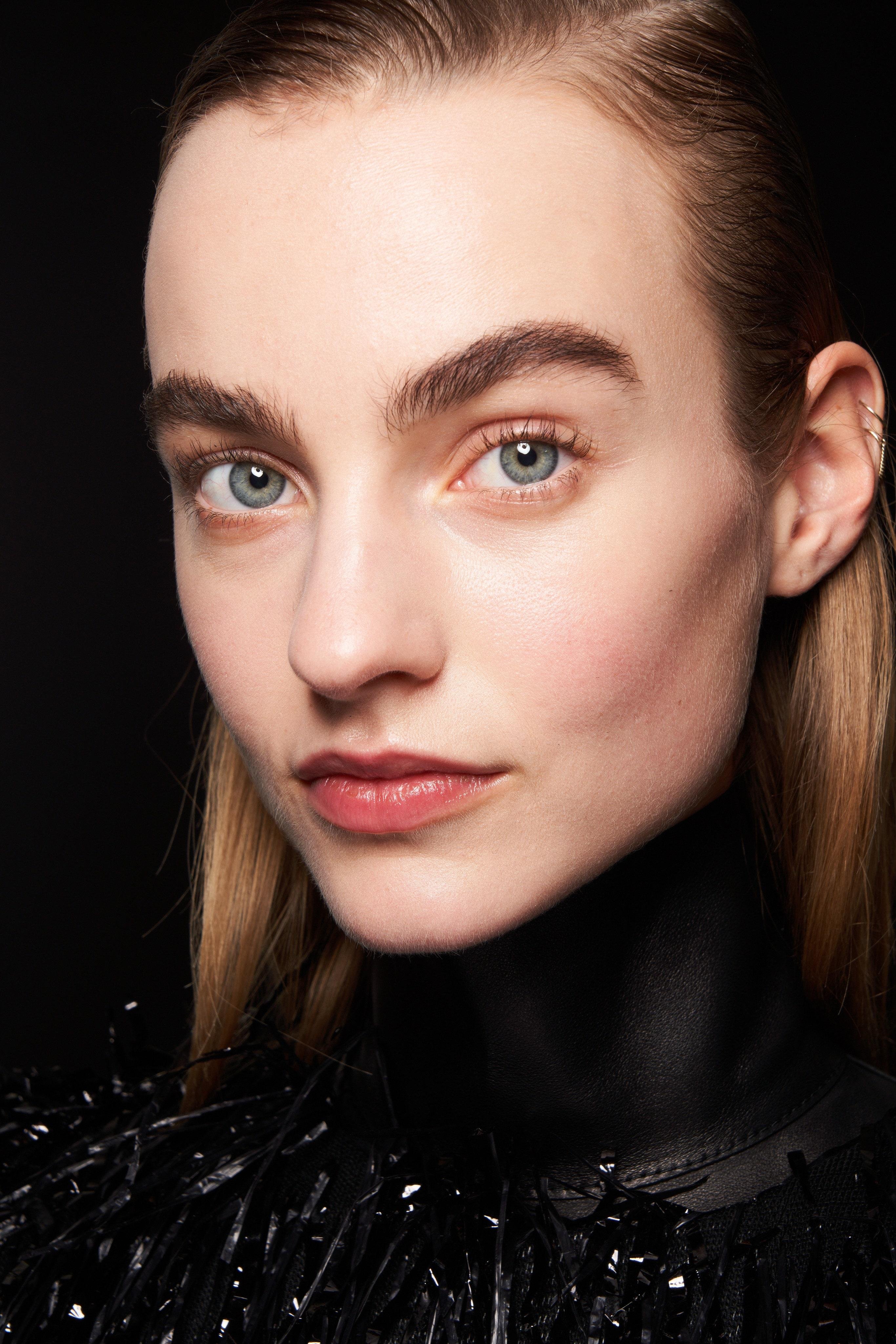 وأيضا اختارت عدة دور أزياء تشقير الحواجب أولا ثم رسم حواجب رفيعة، وكذلك قام البعض باستعمال حبيبات براقة للمسة فريدة.