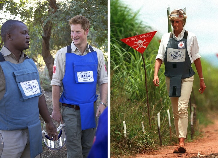 نفس التصرف قام به الأمير هاري عام 2010 في الموزمبيق، لمواصلة الطريق الذي بدأته الأميرة دي.