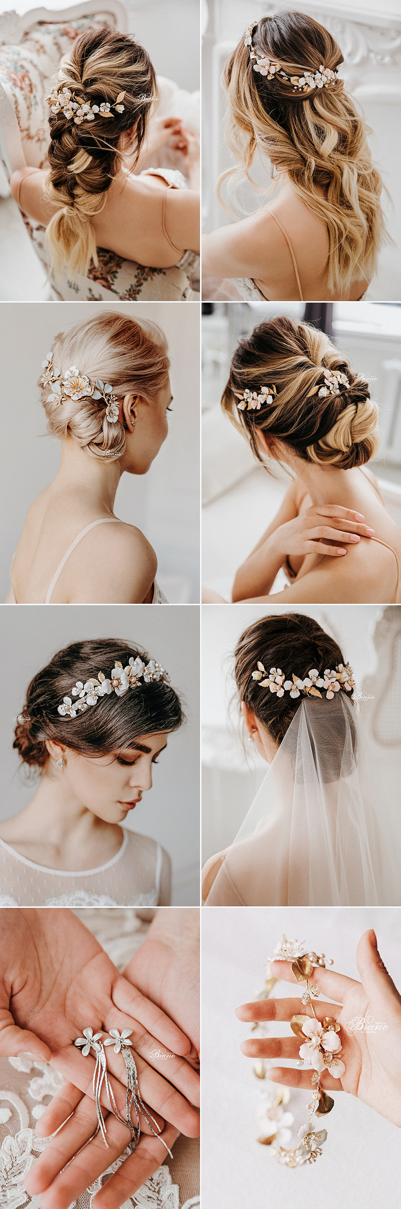 يمكن أن تكون الأكسسوارات الأكثر بساطة وأناقة هي المناسبة للفستان الأبيض على غرار التاج الفضي وأكسسوارات الشعر الألماسية.