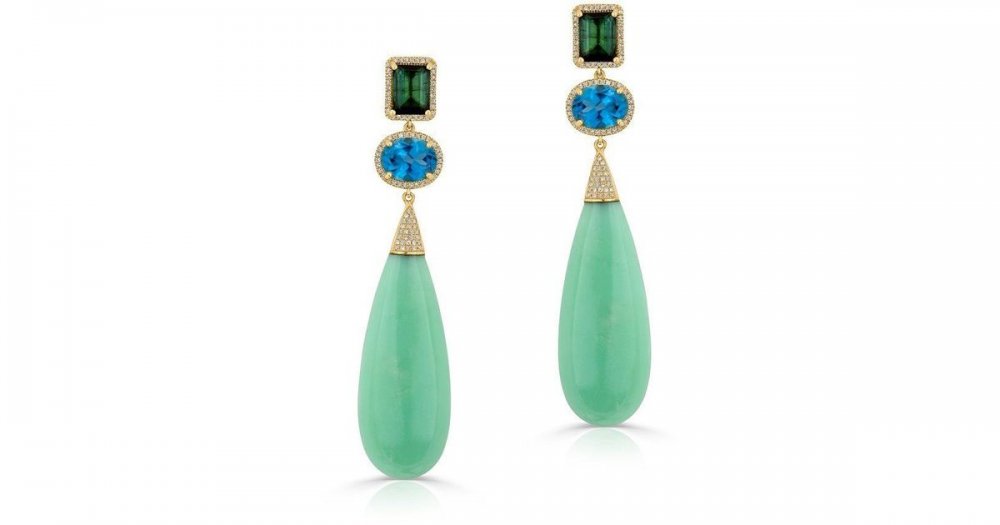 ومن ماركة آن سيستيرون نقترح عليك هذه الأقراط التي صنعت من الذهب الوردي المرصع بالألماس المرصوف، العقيق، التوباز والتورمالين.