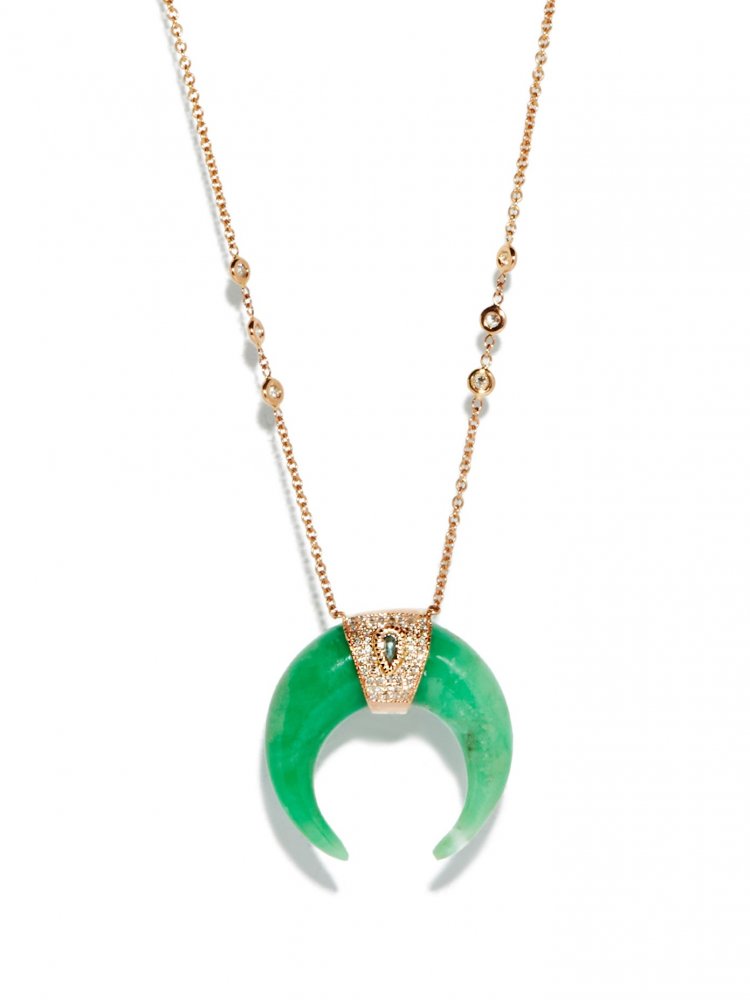 اخترنا لك من علامة جاكي آيش هذا العقد الذي يأتيك من الذهب الوردي المرصع بالألماس والعقيق، في تصميم أنثوي لافت ومتألق.