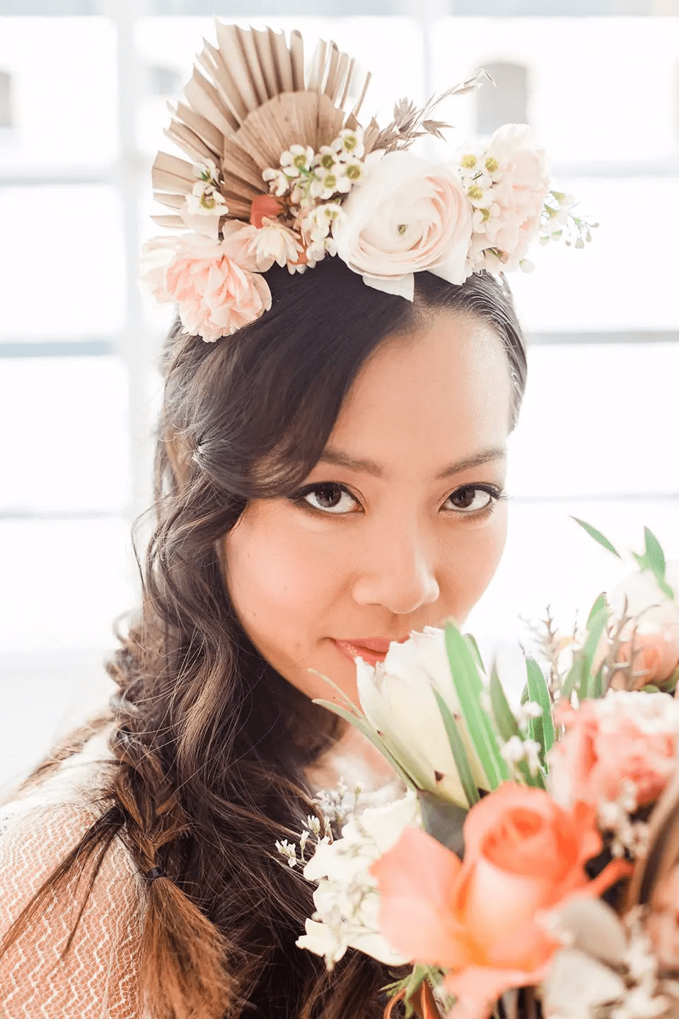 إذا كنت تحلمين بإطلالة زفاف بوهيمية، ننصحك بتجربة أكاليل الزهور المجففة، والتي ستمنحك إطلالة رومنسية جميلة. تستطعين كذلك صنع تاج نباتي مصمم خصيصًا وفقًا لمحيط رأسك وأسلوب زفافك والألوان المفضلة لديك.