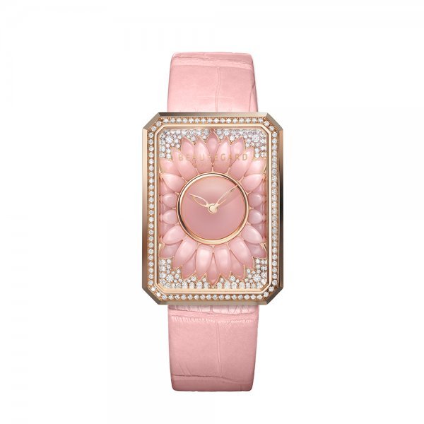 من مجوهرات بوريجارد اخترنا لك هذا الموديل الوردي والمتألق بالذهب الوردي المرصع بالألماس المرصوف والأوبال الوردي المنحوت.