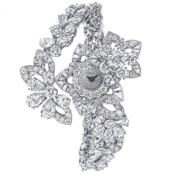 من علامة غراف انتقينا لك هذه الساعة الفخمة للغاية والتي صنعت من الذهب الأبيض المغطى بالألماس اللامع، في تصميم ساحر من وحي زهور البيوني.