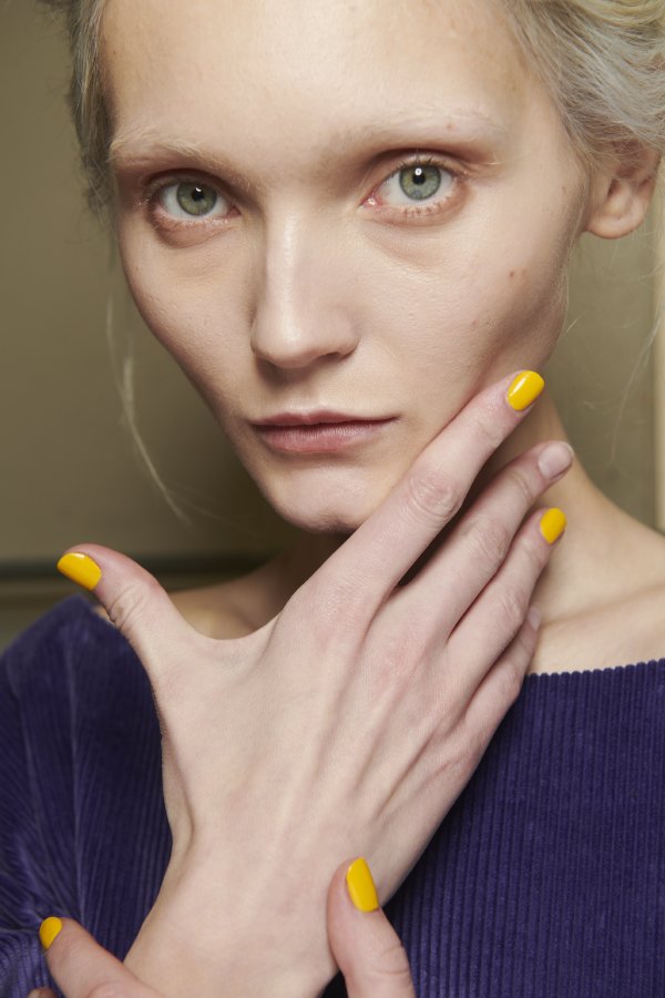 يمكن اللجوء الى منتجات دار Junko Shimada ذات الألوان الرائعة والتدرجات القوية وخصوصا اللون الأصفر والذي سيكون مثالي وملفت بشكل أروع على الأظافر القصيرة والمربعة.