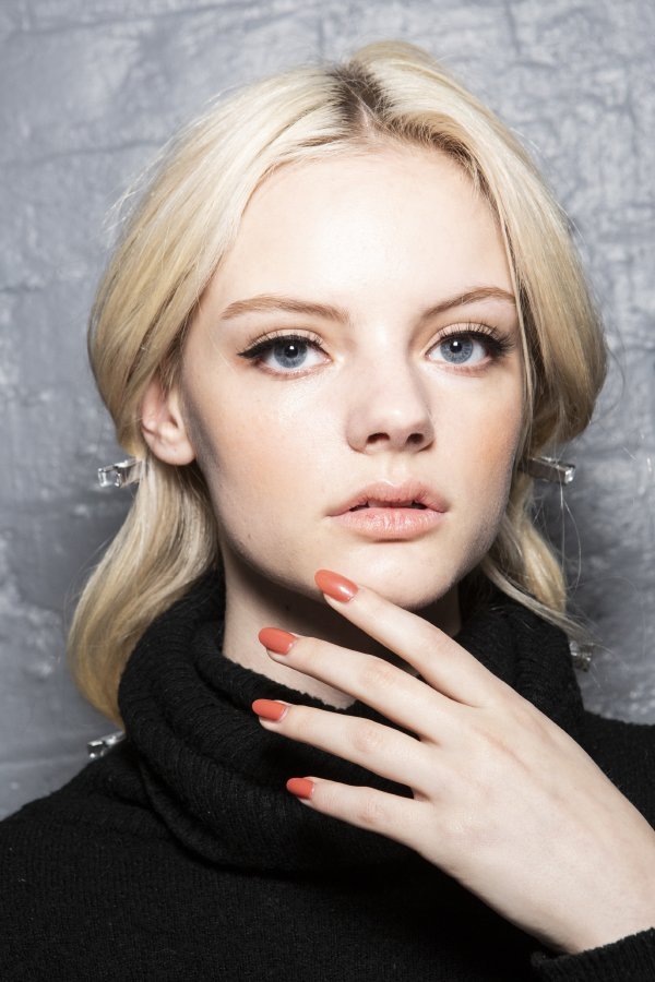 ولاعتماد صيحة اللون المرجاني ذو التدرجات الفاتحة نقترح عليك أسلوب دار Mark Fast بتطبيق هذا اللون على الأظافر الطويلة والدائرية.