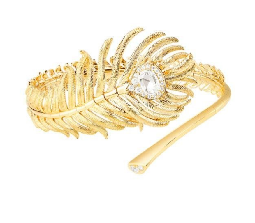 إليك هذا السوار الخاص بمجوهرات بوشرون من مجموعتها Plume de Paon والذي يتألق من الذهب الأصفر الذي يزينه الألماس المتلألئ.