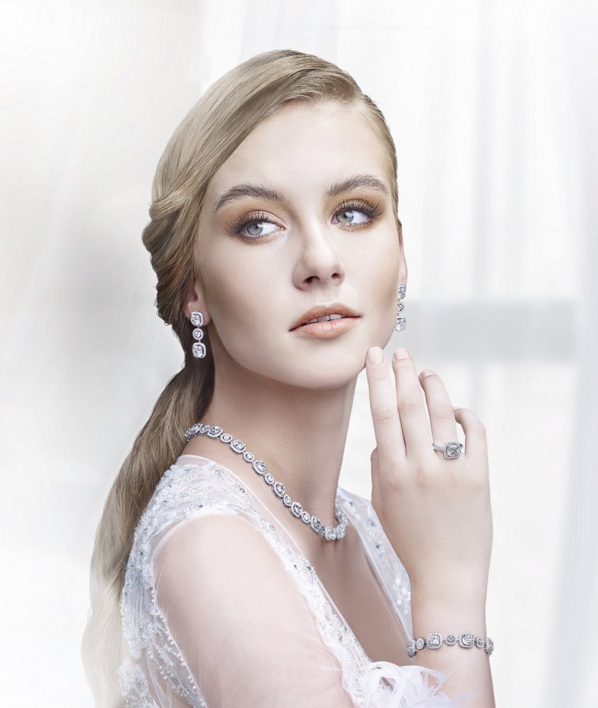 والمتألق بالذهب الأبيض المرصع بالألماس بأسلوب مميز وأنثوي للغاية.