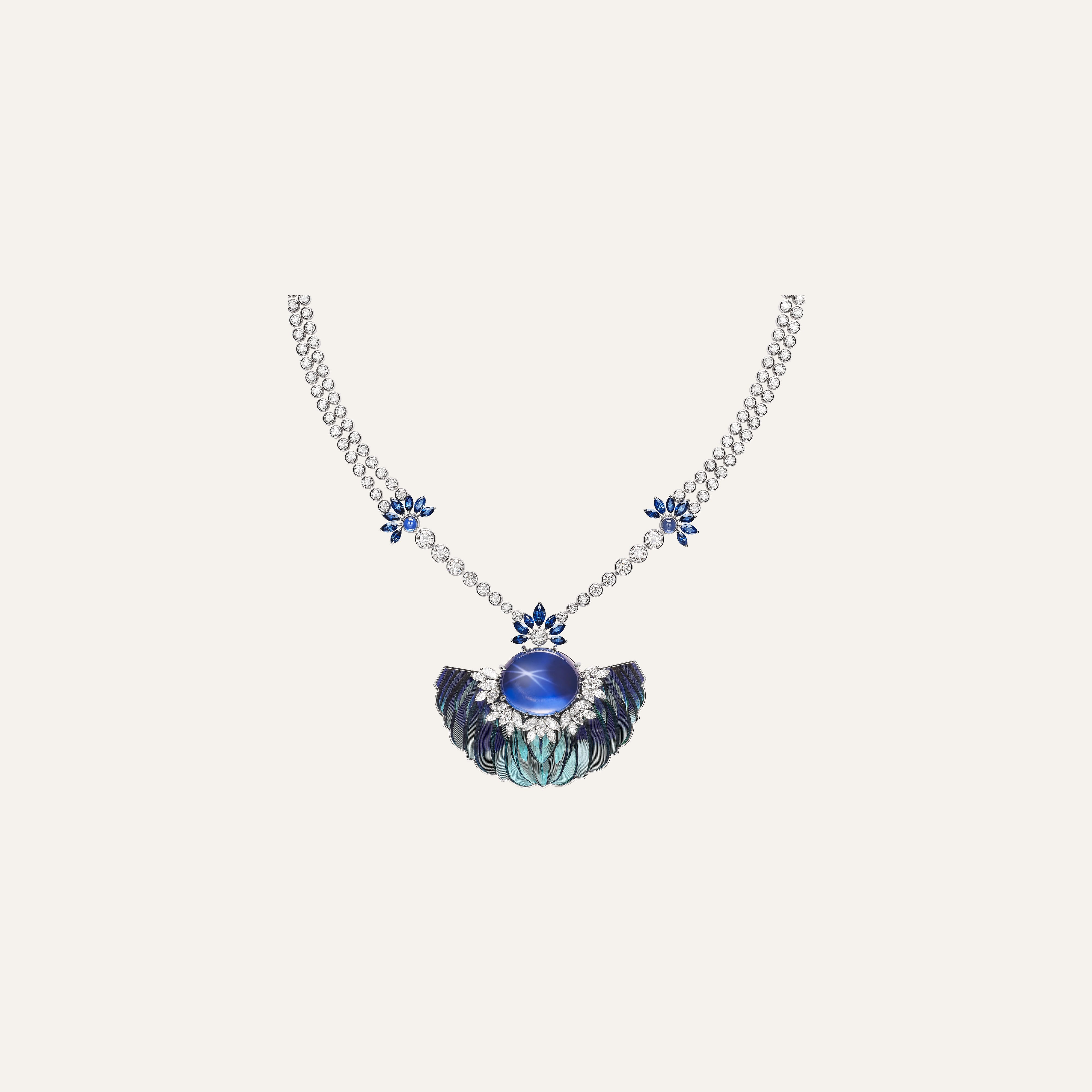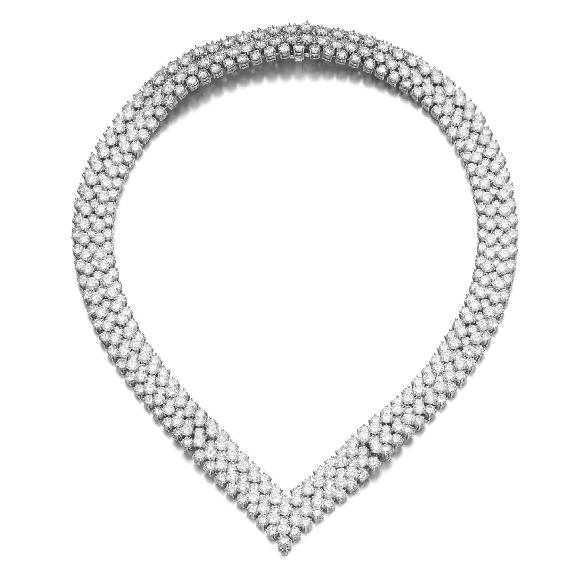 قلادة النهر من الماس وهي قلادة من الخمسينات عرضت في معرض مجوهرات ماركة فان كليف وآربالز القديمة سنة 2018.