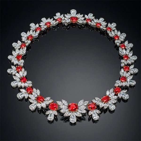 يعتبر كل من الألماس والياقوت الأحمر من أجمل وأفخم الأحجار التي تزين قطع المجوهرات، وخصوصا عند تزيينها للقلائد والعقود.