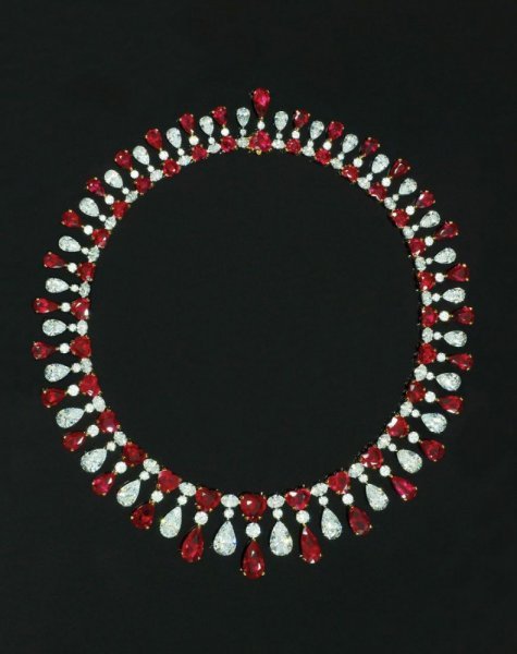 ويعتبر هذا العقد الأول في لائحة أفخم عقود الألماس. يتكون من 24 قطعة من أحجار الياقوت الأحمر بدرجة دم الحمام Pigeon Blood Rubies.