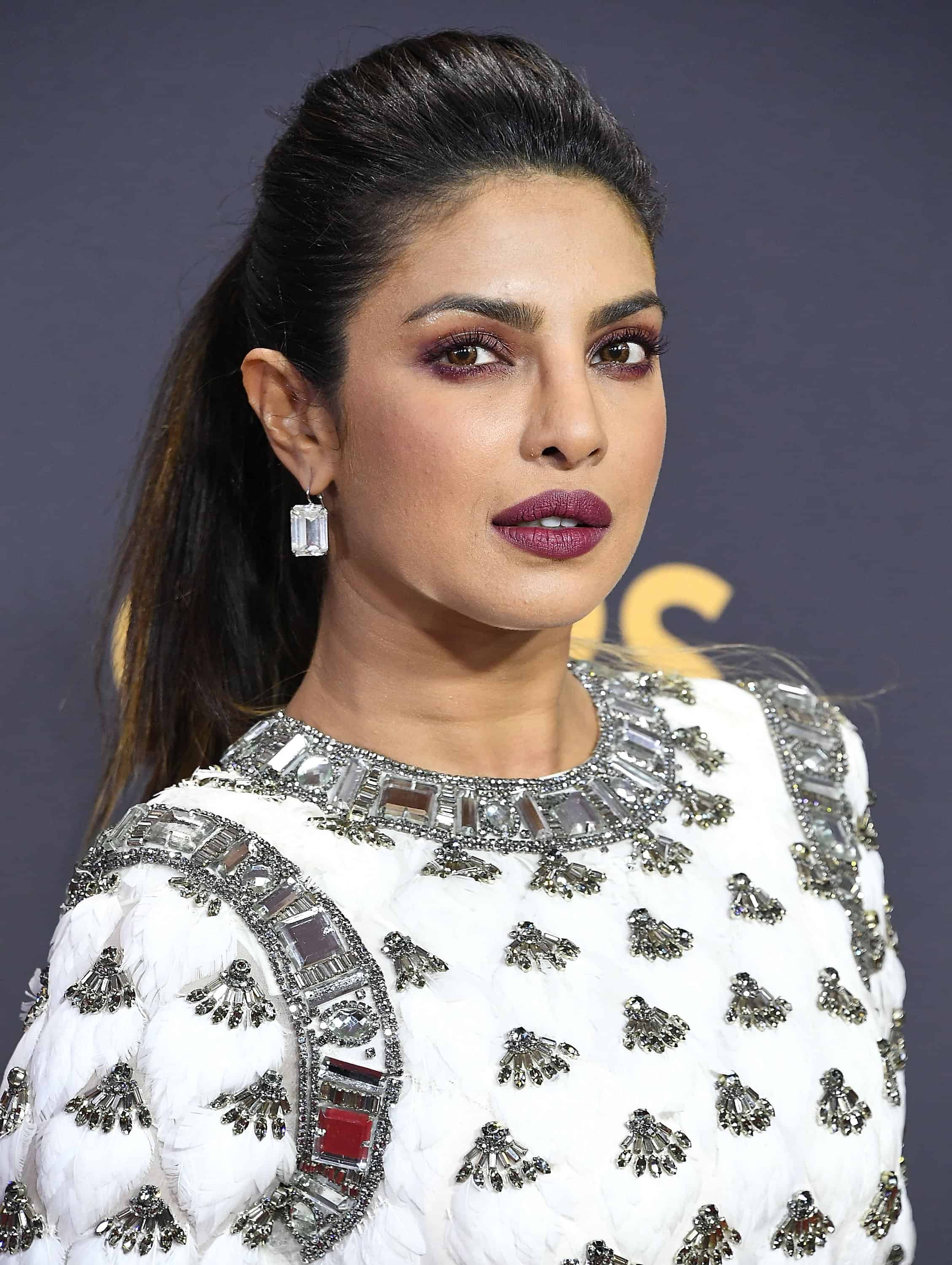 يرتكز اختيار بريانكا شوبرا على السجادة الحمراء على ظلال عيون سموكي ماروني باذنجاني وغطت شفتيها بظلال مماثلة.