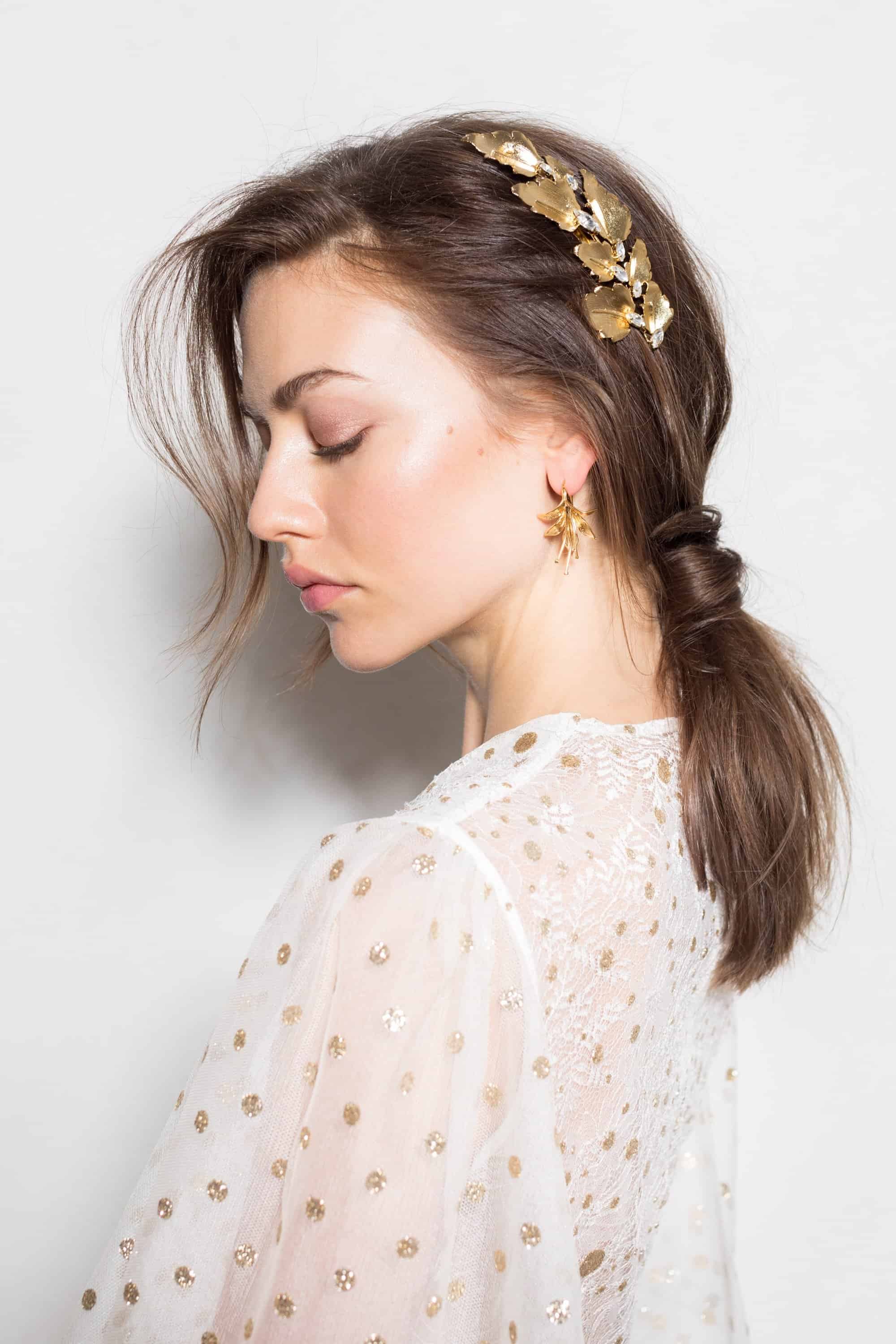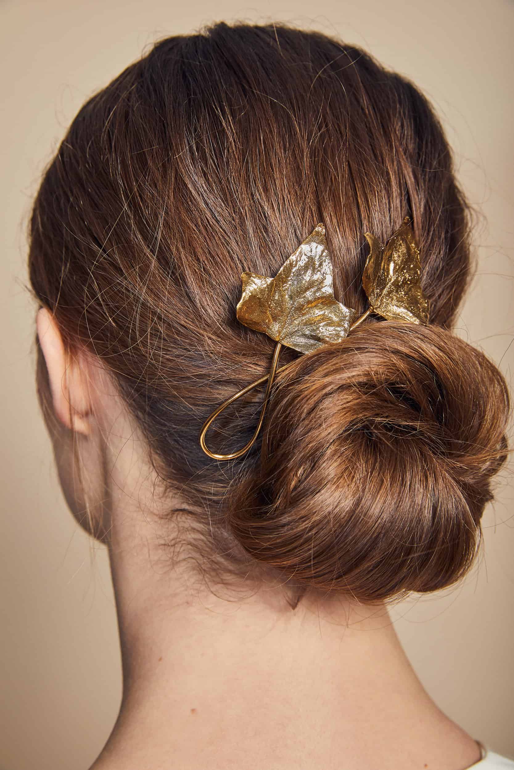 4- أكسسوارات شعر جاني بالتزر: مشط شعر من الأوراق الذهبية