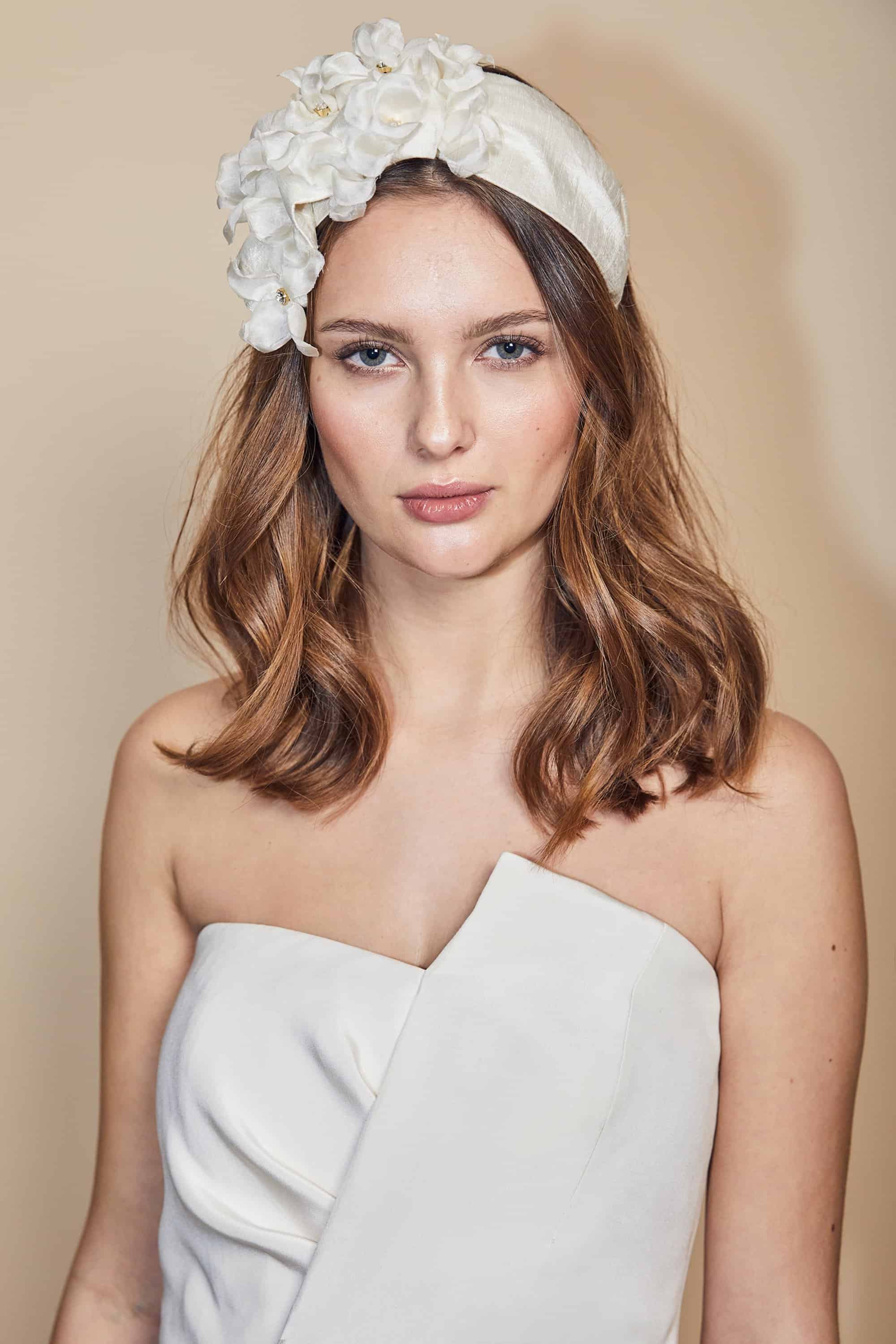 5- أكسسوارات شعر عروس جاني بالتزر: عصابة رأس الزهور الحريرية