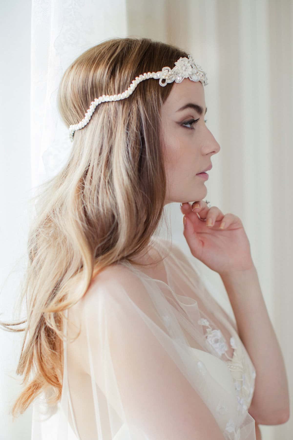 1- أكسسوارات شعر العروس جاني بالتزر: عصابة رأس تيريز الحريرية