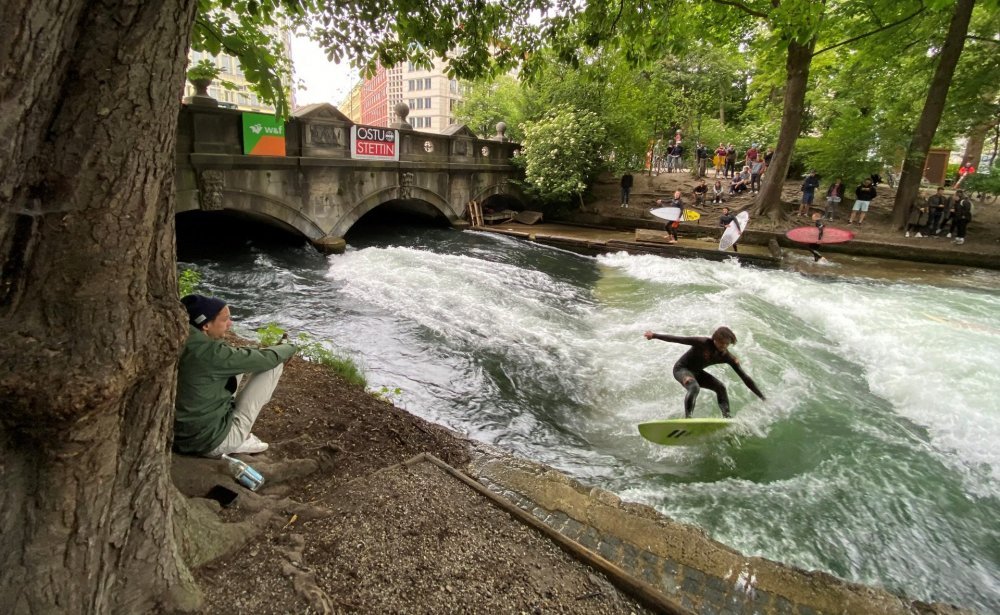 فبالإضافة إلى كونه واحد من المعالم المعمارية المميزة في ميونخ فهو يعتبر أيضا وجهة لعشاق ركوب الأمواج طوال السنة.