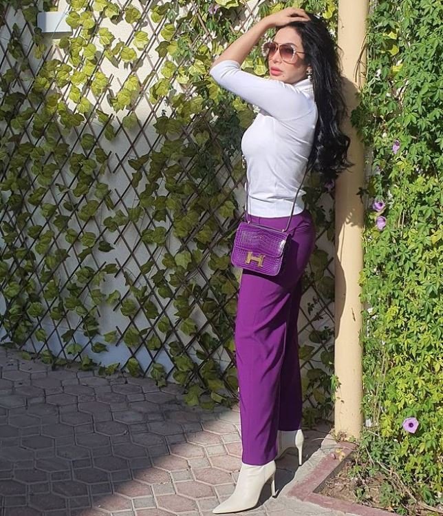 حيث لفتت الأنظار بأحدث إطلالاتها معتمدة صيحة البنطلون ذو اللون البنفسجي، وإطلالة بمعطف أبيض.