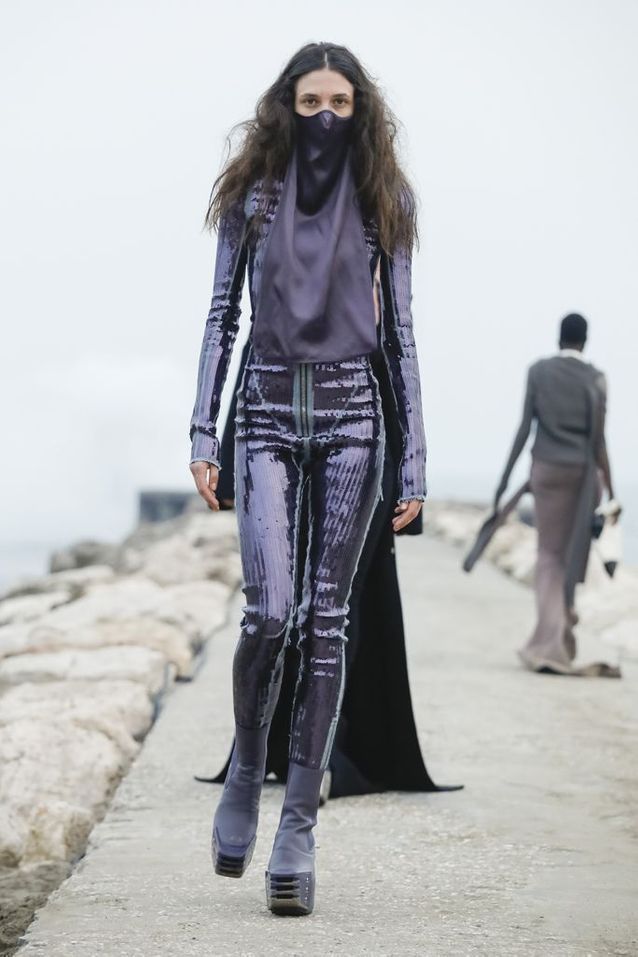 لا تترددي في اقتناء بدلة catsuit ، وهي بدلة ضيقة لكامل الجسم، ستكون مناسبة في الحفلات، قامت الماركة Rick Owens بتزويقها بالترتر.