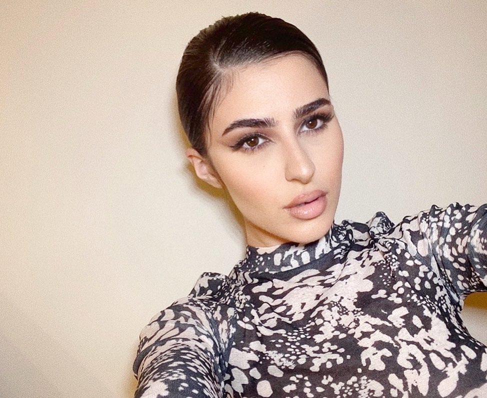 وأيضا طبقت مدونة الموضة شهد الجميلي الظلال السموكي برسمة الكات ايز بأسلوب مرفوع للأعلى واعتماد الرموش الطويلة.