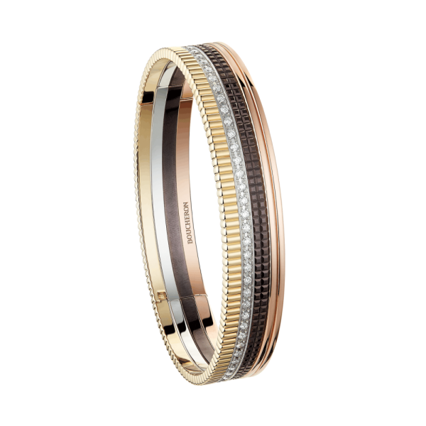 نستعرض عليك هذا السوار الذي انتقيناه من علامة بوشرون والذي صنع من الذهب بألوانه الأبيض، الوردي والأصفر مع السيراميك، في تصميم أنيق وفريد.