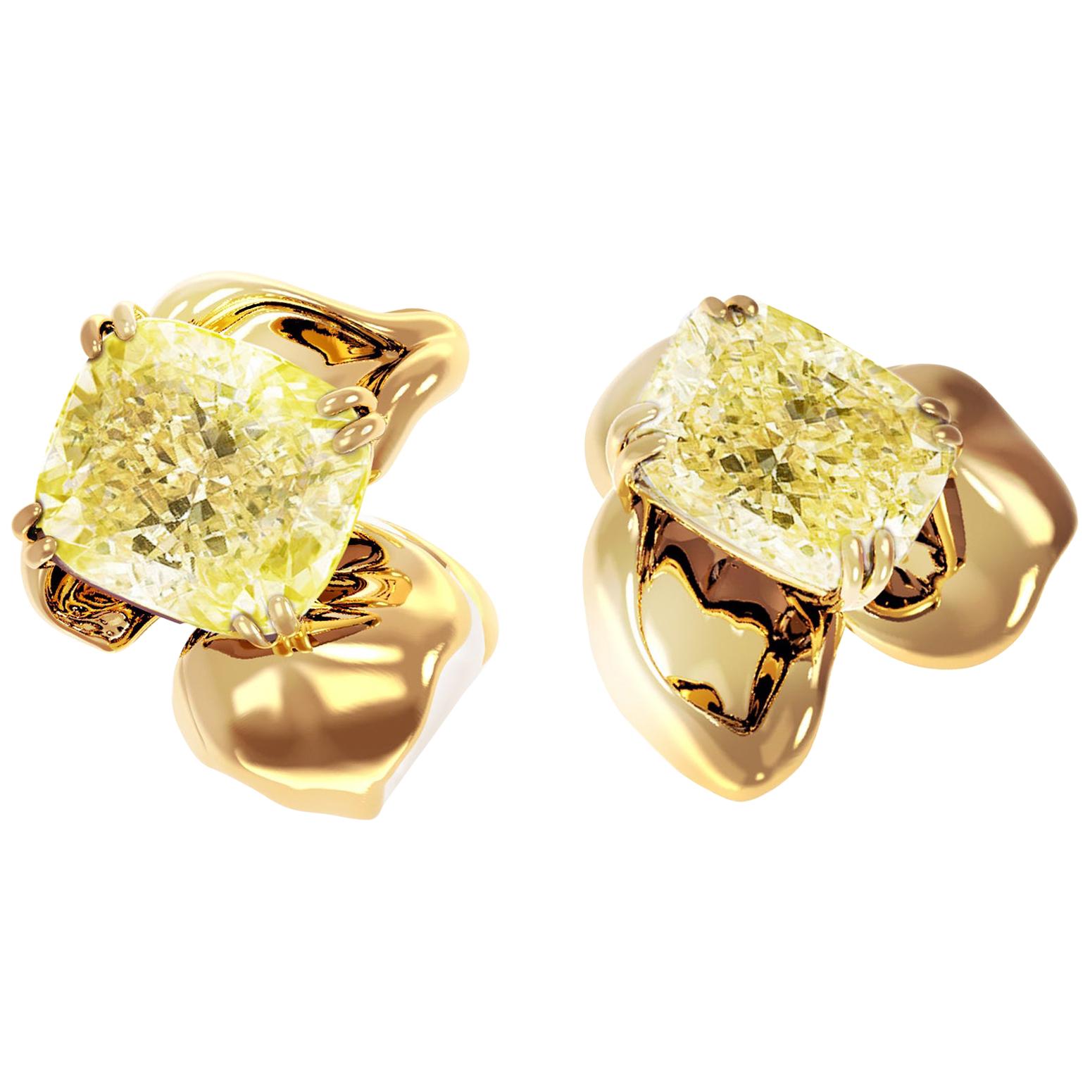 - أقراط من الذهب الأصفر عيار 18 قيراط مرصّعة بـ 4 قيراط من الألماس الأصفر اللامع