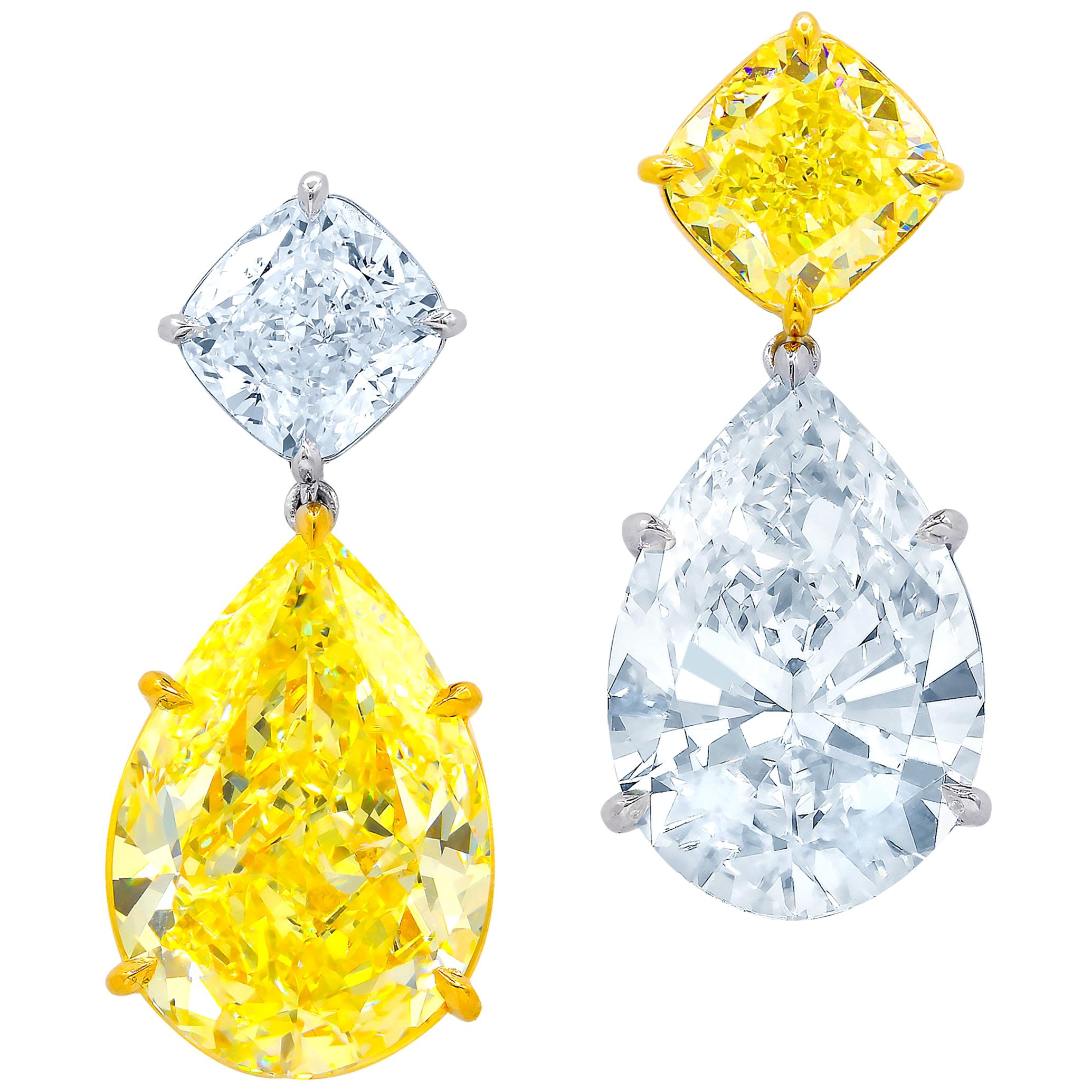- أقراط ديانا من البلاتين مرصعة بقطع ماس متناظرة باللونين الأبيض والأصفر بمجموع 38.64 قيراط