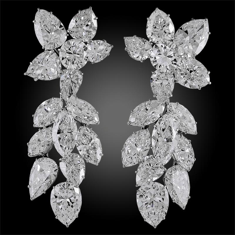 - أقراط هاري وينستون من البلاتين على شكل أوراق مرصعة بما يقارب 65 قيراط من الماس الأبيض عالي الجودة