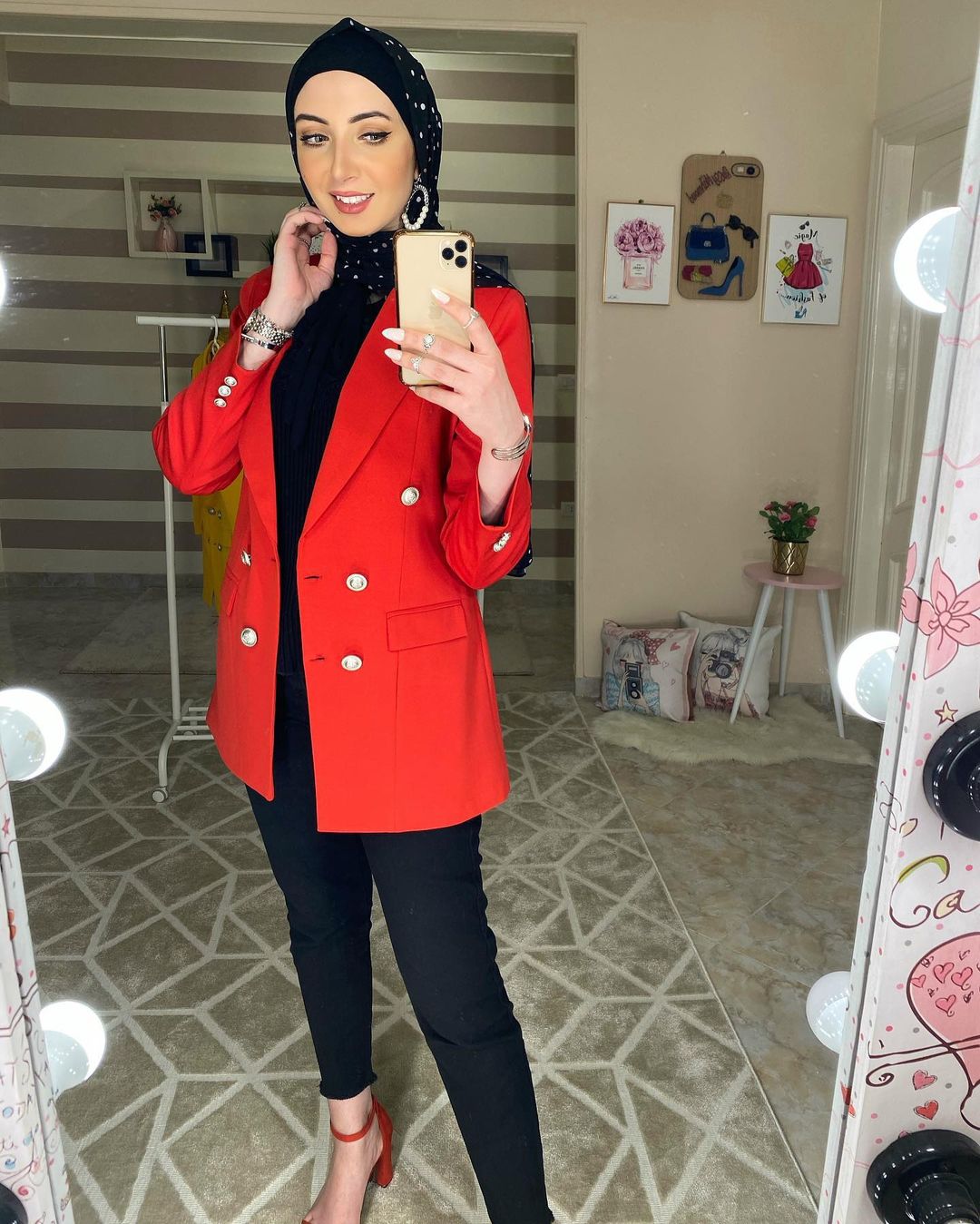 فإن لم تكن جميع الإطلالة باللون الأحمر فعلى الأقل سنجد قطعة واحدة من الملاس أو أحد الأكسسوارات بهذا اللون.