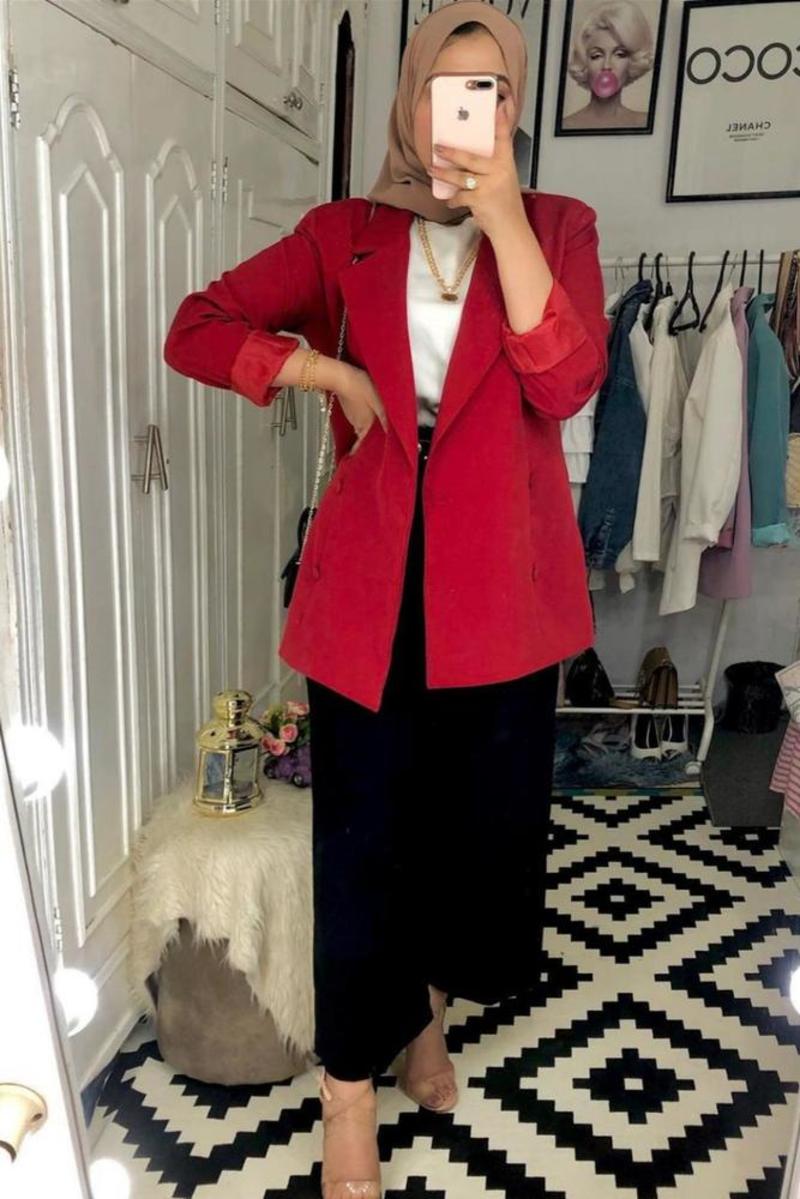في بداية موسم خريف 2021 وشتاء 2022 نلاحظ تصدر اللون الأحمر لقوائم الألوان البارزة وخاصة في صوف أزياء المحجبات والملابس المحتشمة بصفة عامة.