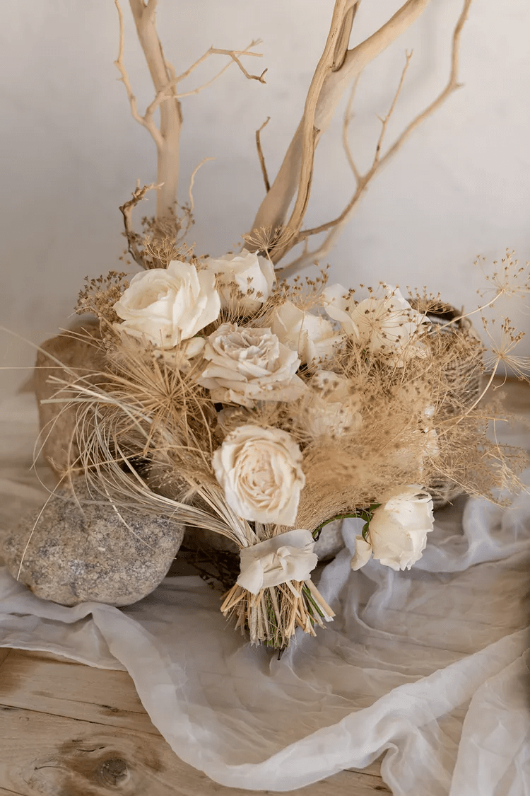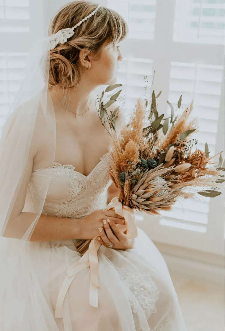 باقة الزهور المجففة – سيكون اختيار باقة الزفاف المصنوعة من الزهور الطازجة دائمًا خيارًا تقليديًا مذهلا. ولكن هذا لا يعني أنه الخيار الوحيد لحفل الزفاف، إذا كنت تبحثين عن بديل، فقد تكون باقة الزهور المجففة هي الحل الأمثل.