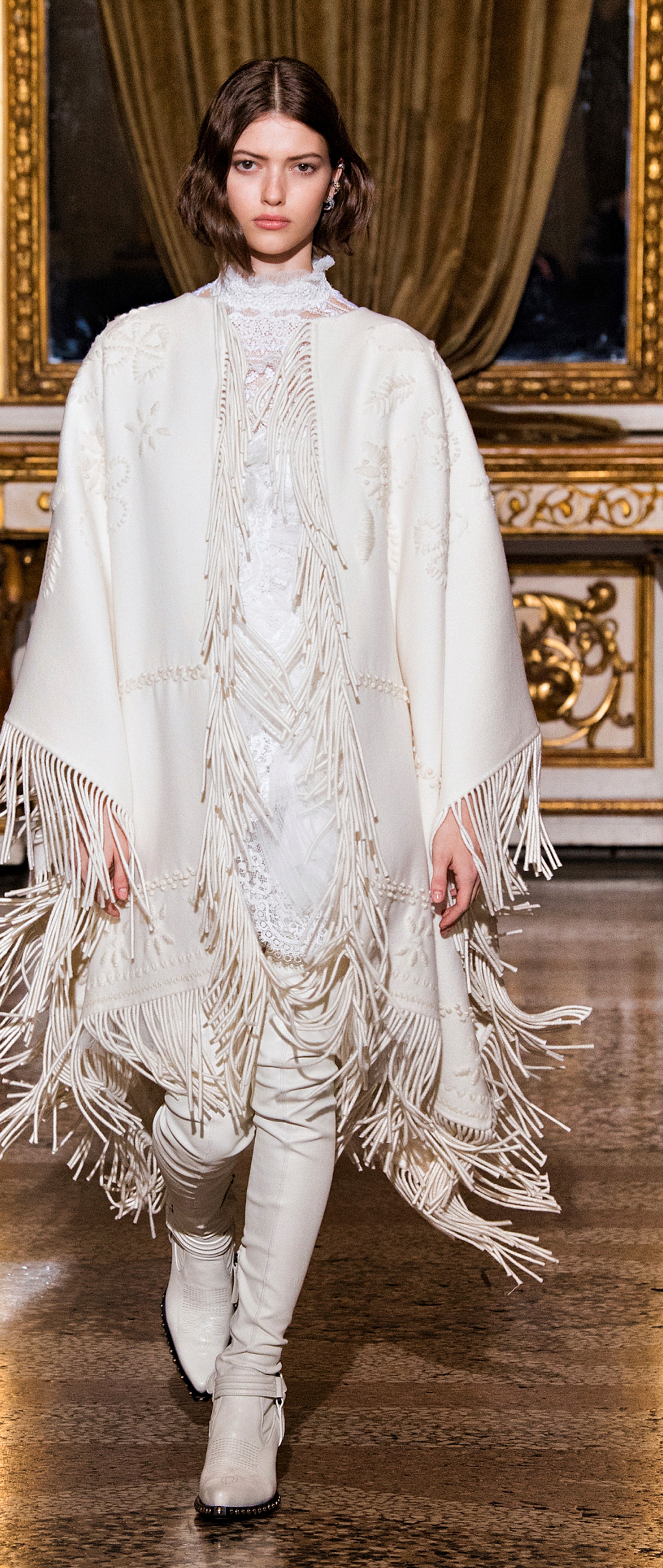 كاب قطني أنيق باللون الأبيض منع تطريزات على مستوى الصدر وشراريب تتدلى من الجانبين والصدر والأكمام. يمكنك تنسيق للإطلالات الرسمية أو السهرات أو حتى للعروس الجديدة.