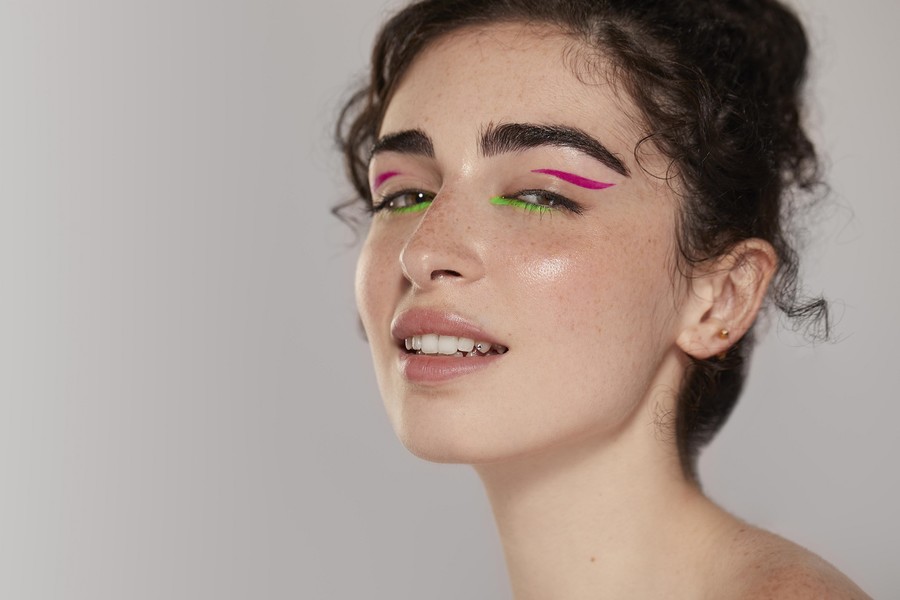 وهنا يأتي دور ظلال العيون، حيث عليك تطبيق ايشادو أخضر اللون بشكل متدرج على كسرة العين ثم الظلال الذهبية على خط الرموش. ولاتنسي رسمة الايلاينر المسحوب لإبراز عينيك بشكل جميل.