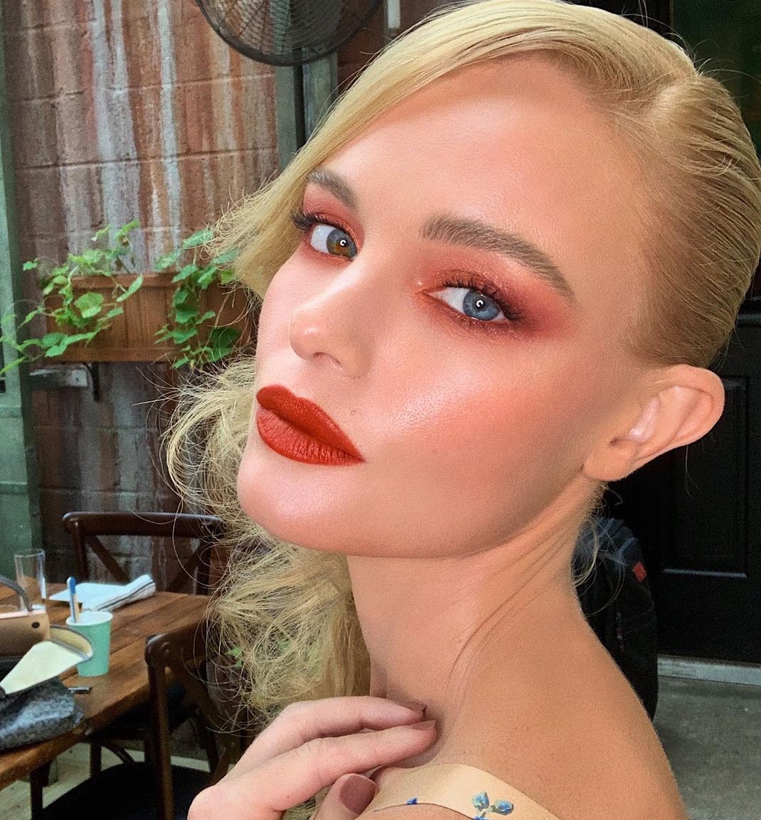 الآيلاينر باللون الأحمر باستخدام الظلال