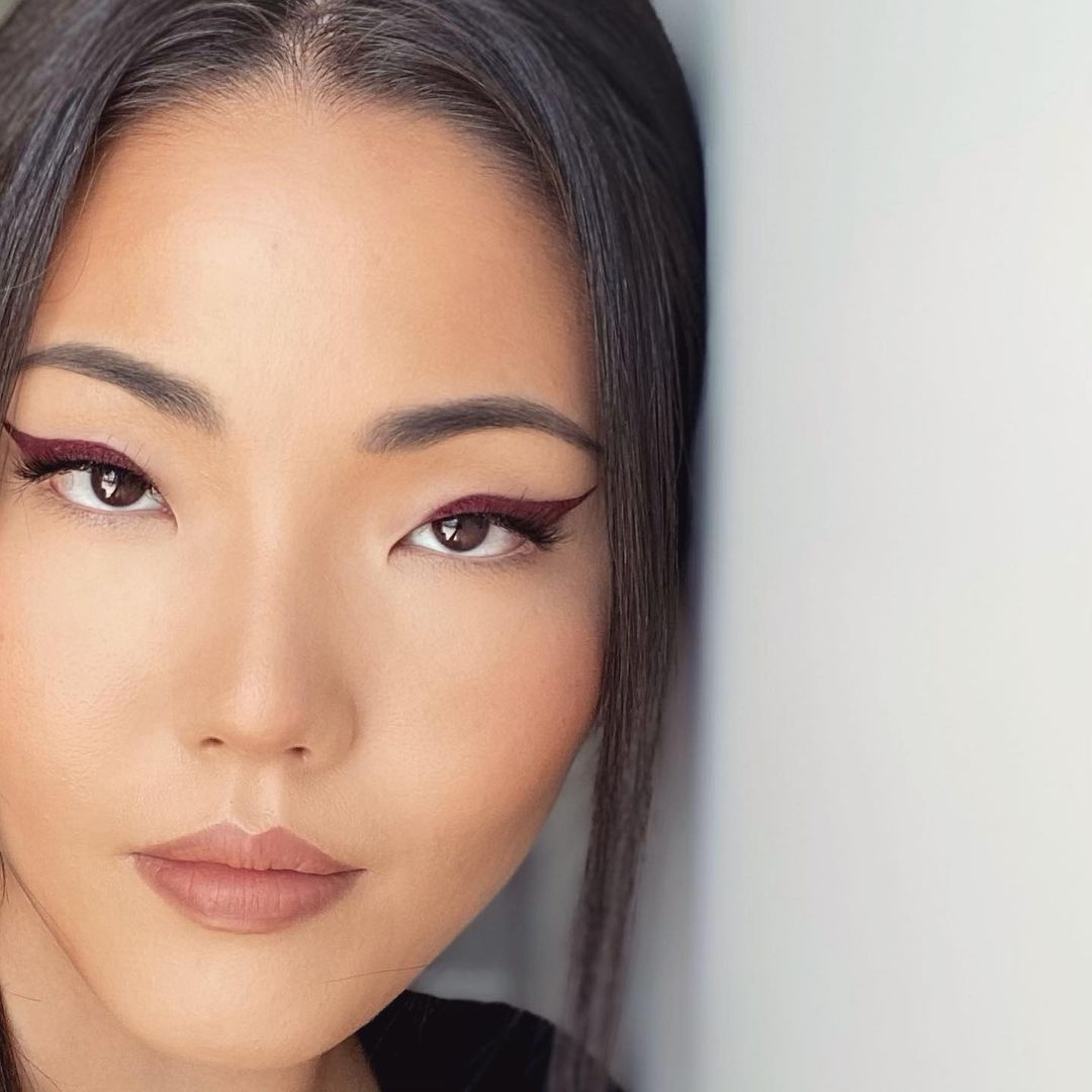 احصلي على رسمة آيلاينر جذابة من خلال رسم خط عريض باللون الأحمر التوتي الداكن وارفعي نهاية الخط للأعلى بأسلوب مجنح.