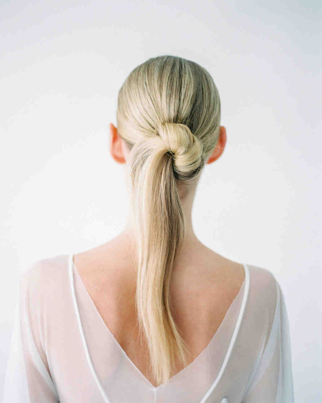 الصورة التالية تظهر لك دمجا أنيقا بين تسريحة ذيل الحصان والكعكة الكلاسيكية.