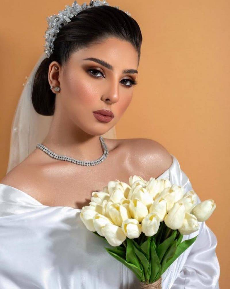 للتمتع بإطلالة عصرية جذابة، لا تترددي في تجربة هذه التسريحة الجميلة، مع طوق من الجواهر ملتف حول الكعكة ويمكنك إضافة طرحة متدلية على طول الفستان.