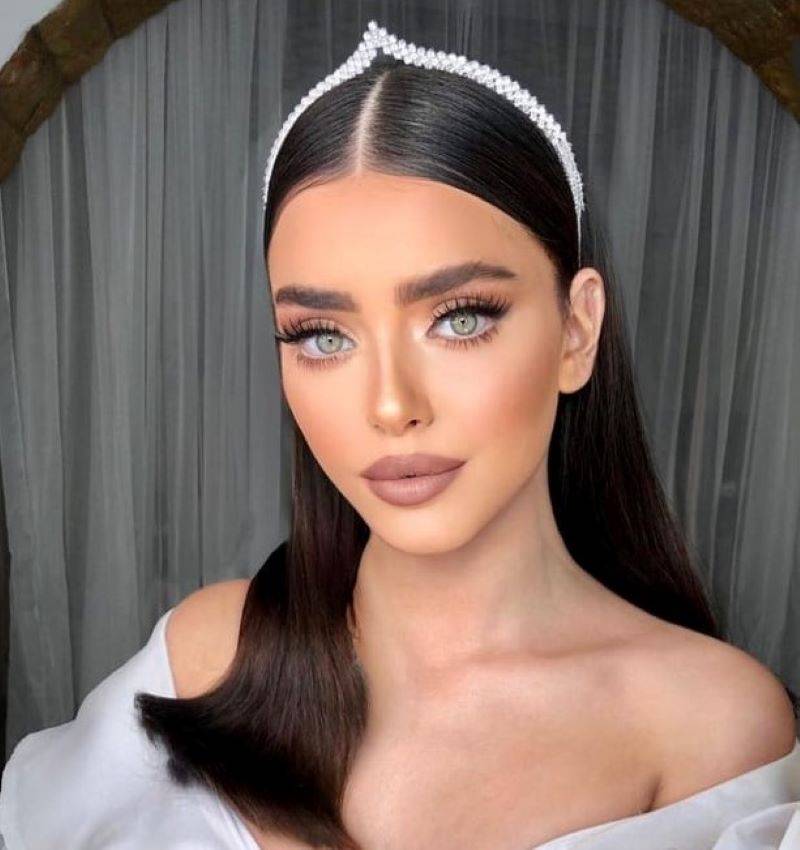 تسريحة الشعر المنسدل مع طوق من الجواهر