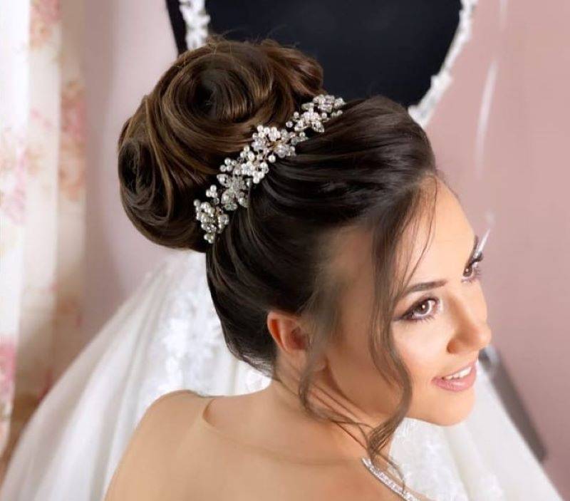 تسريحة الكعكة المرفوعة المرصعة بالجواهر