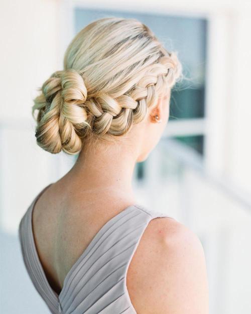 3. تسريحة الكعكة الملكية المنخفضة مع الجدائل