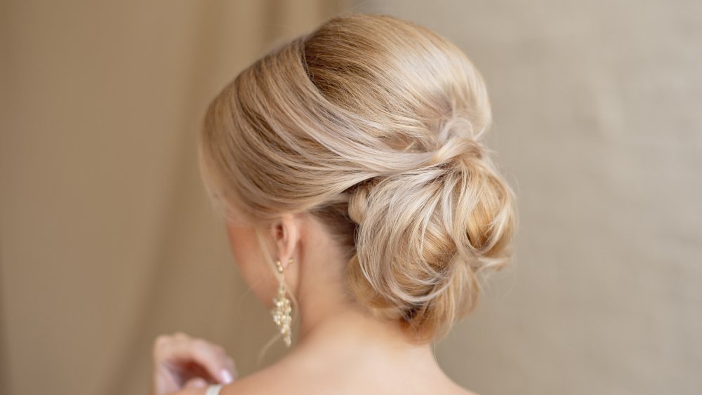لفي الشعر على نفسه ضعي الدبابيس المثبتة للشعر وتستطيعين وضع مقبض للشعر على شكل وردة ملونة أو أكسسورات شعر مرصعة بالأحجار لإضفاء شكل أكثر أناقة و جاذبية.
