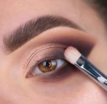 - أحضري ظلال باللون البرتقالي الفاتح وطبقيه على الجفن العلوي الثابت، تحت الحاجبين، فوق الزاوية الخارجية لطية العيون لإضفاء لمسة مشرقة على الظلال الدخانية.