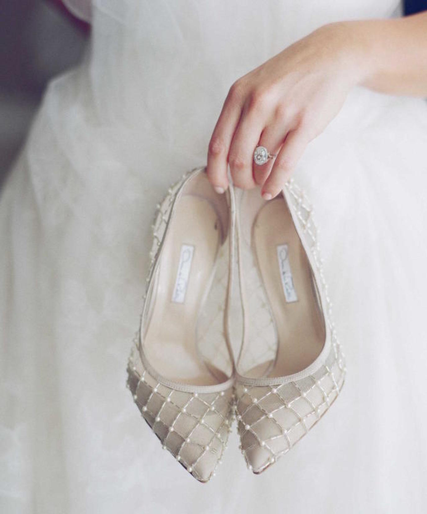 حذاء كعب عالي مظرز باللؤلؤ للعروس