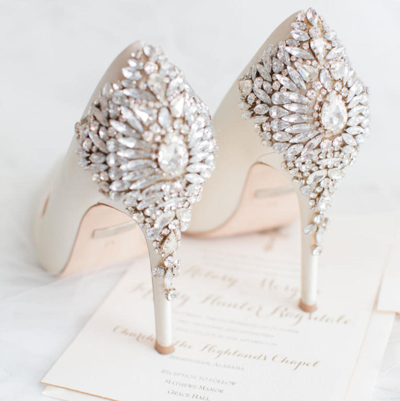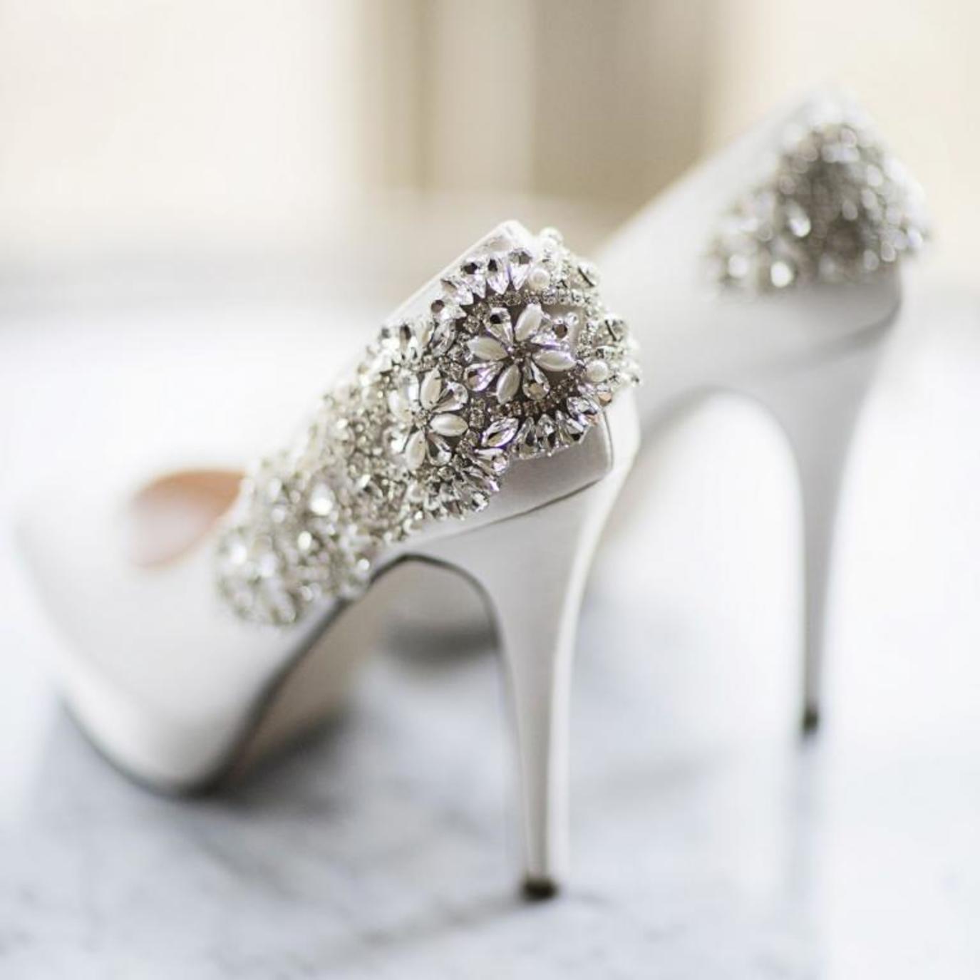 حذاء كعب عالي مرصع بالشواروفسكي للعروس