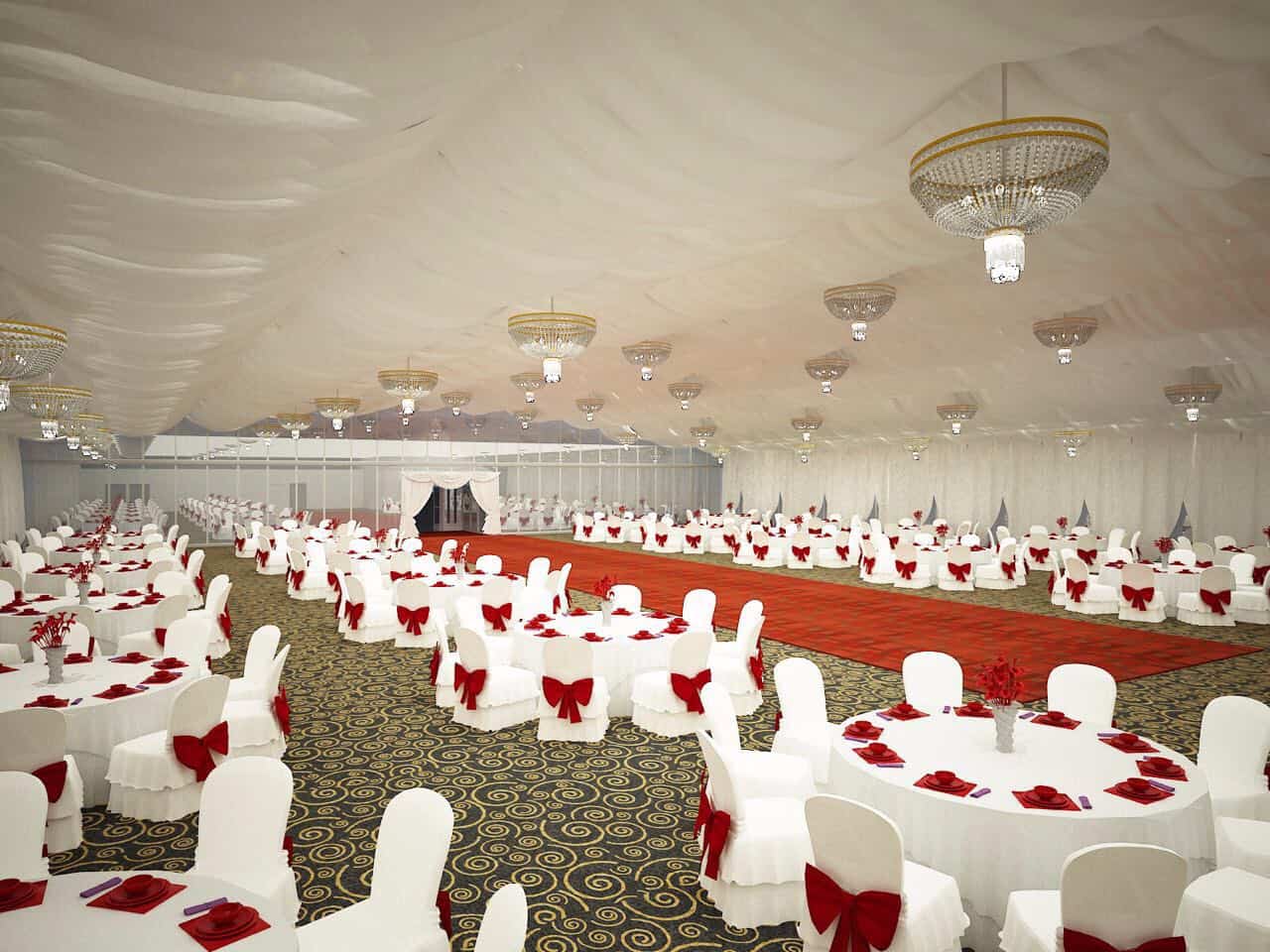 شاهدي هذه الخيمة الرائعة والتي من شأنها أن تستقبل كل ضيوفك في مرة واحدة دون الحاجة إلى تقسيمهم إلى أكثر من قاعة.
