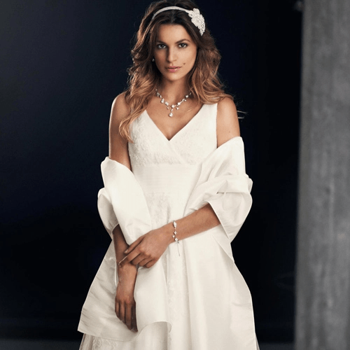 إذا كانت بشرتك داكنة، يمكنك ارتداء فستان زفاف باللون أبيض لأن التباين القوي سيكون لصالحك. ويمكنك أيضًا اختيار اللون الكريمي للحصول على تأثير ناعم.
