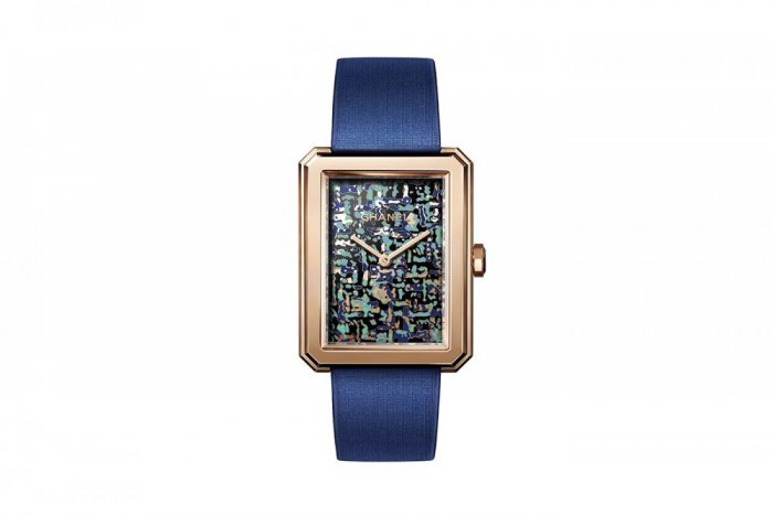 نستعرض عليك هذه الساعة الخاصة بشانيل والتي تأتيك من الذهب الوردي ومينا تزينها نقوش الاناميل التي استلهمت من أقمشة التويد، في تصميم فاتن وفخم.