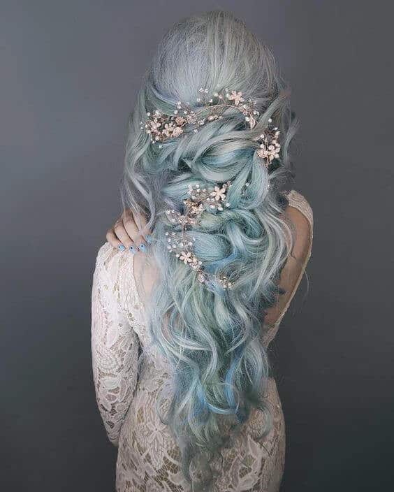 اللون الذي يظهر في الصورة هو أزرق باستال بتدرجات فضية. يناسب الباستال صاحبات الشعر الطويل.