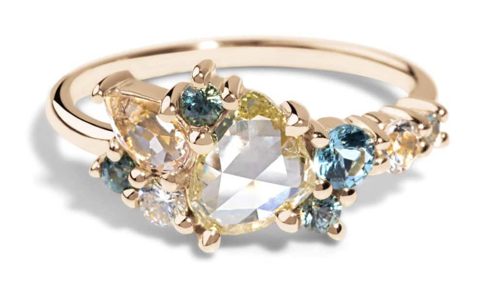 صممي خاتم خطوبتك بنفسك : خاتم خطوبة العنقود من الذهب الأصفر عيار 14 قيراط مرصع بالماس