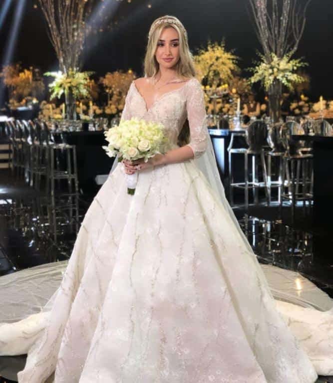 خلال حفل الزفاف غيرت الزاهد فستانها لتختار فستانا شفافا يحتوي على الكثير من الورود الأنيقة والفاخرة.