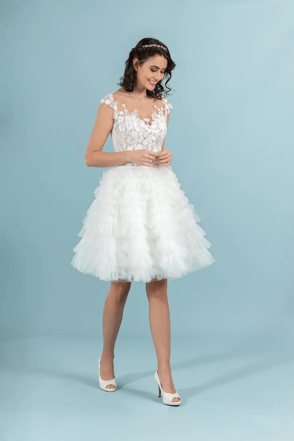 تعتبر فساتين الزفاف القصيرة مخصصة لقاعات الحفل، أو للإحتفالات الخارجية، فهي ستمنحك إطلالة عصرية وتشعرك بالراحة أثناء التنقل بين الحاضرين.
